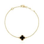 Chaque bijou de la collection Alhambra — colliers, bracelets, boucles d’oreilles et bagues — est conçu avec une précision remarquable, mettant en valeur des matériaux précieux soigneusement sélectionnés tels que la nacre, l’onyx, la malachite, la cornaline ou encore le métal doré aux finitions polies miroir. Les contours perlés, signature emblématique de la maison, apportent une touche de sophistication et soulignent la finesse du design.