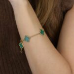 Chaque bijou de la collection Alhambra — colliers, bracelets, boucles d’oreilles et bagues — est conçu avec une précision remarquable, mettant en valeur des matériaux précieux soigneusement sélectionnés tels que la nacre, l’onyx, la malachite, la cornaline ou encore le métal doré aux finitions polies miroir. Les contours perlés, signature emblématique de la maison, apportent une touche de sophistication et soulignent la finesse du design.