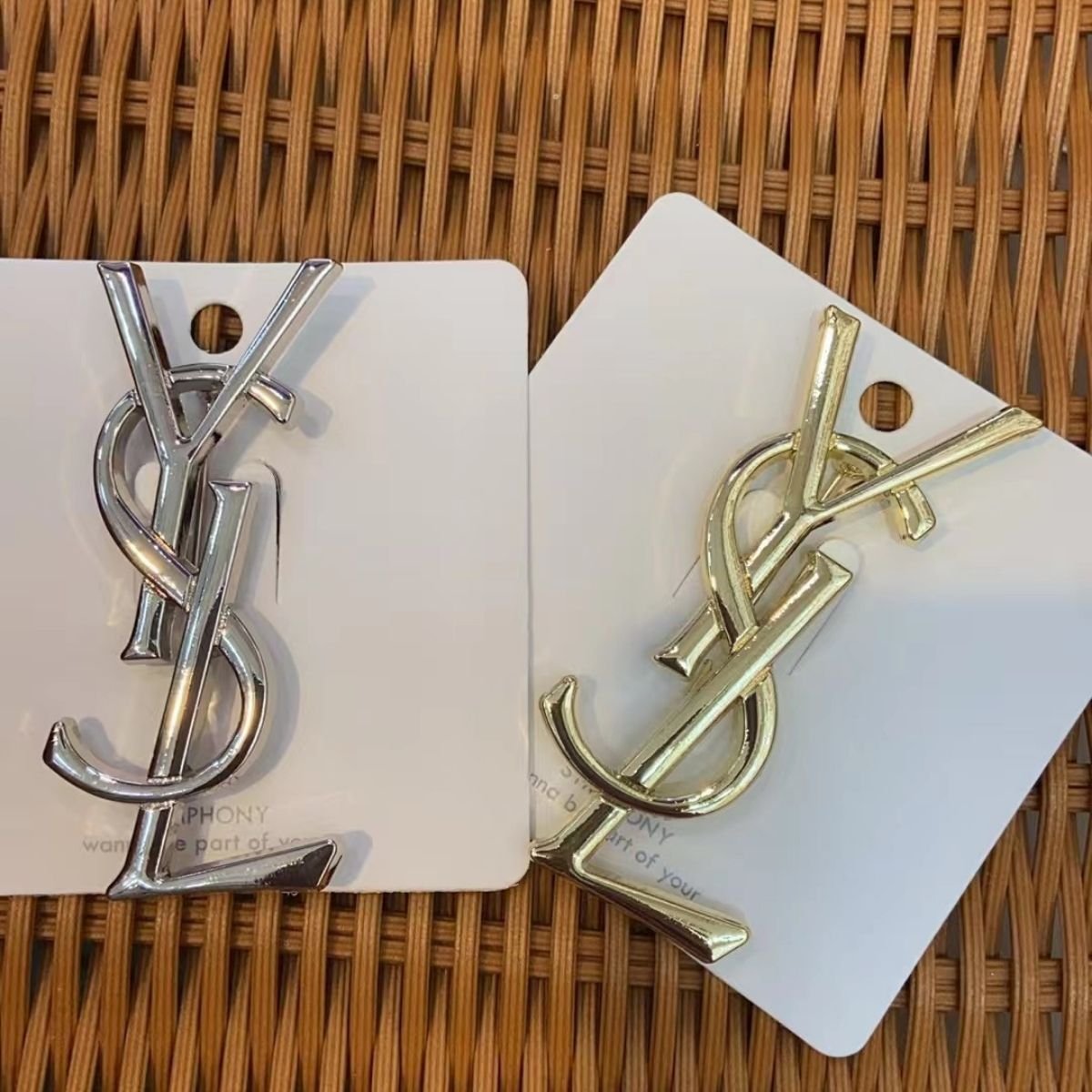 Apportez une touche de luxe et d’élégance à votre style avec cette broche Yves Saint Laurent ornée de strass étincelants. Conçue avec un souci du détail remarquable, cette broche se distingue par son design emblématique et son éclat sophistiqué. Les strass finement sertis captent la lumière sous tous les angles, offrant un rendu brillant et raffiné qui attire immédiatement le regard.